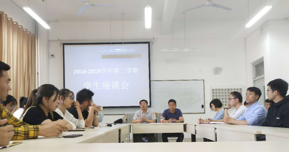 5月20日,学校在莱芜校区教学楼7105召开期中教学检查学生座谈会。副院长魏新刚、教务处处长李学峰、教务处相关人员及2018级学生代表参加座谈。座谈会由李学峰主持。