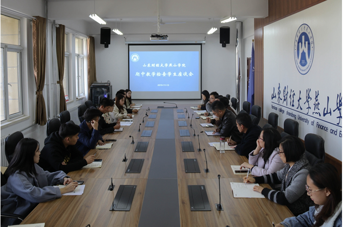 为及时了解学生思想动态,规范、有序、科学地开展各项工作,11月13日下午,教务处和学生处在莱芜校区行政楼5楼会议室共同召开了期中教学检查学生座谈会。副院长魏新刚、教务处处长李学峰、学生处处长巩治国、教务处和学生处相关人员以及莱芜校区学生代表参加了本次座谈会。