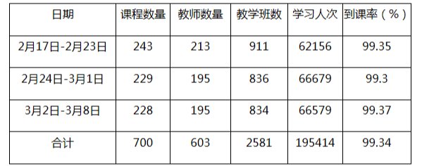 线上教学运行三周以来,通过教务处的统筹规划、各教学单位梳理总结,线上教学工作运行平稳,线上线下课程建设也从逐步开展发展到迅速搭建网络平台、迅速建课的高速实战阶段。对于全面开展的线上教学工作,从学校层面的统筹部署,到教师调整教学手段和教学方式、学生逐步适应在线学习的方式,各层面的工作协调配合,保证了学校教学工作的有序进行。在取得巨大收获和进步的同时,我们也应该清醒认识到各方面的工作还有待继续改善,持续推进。