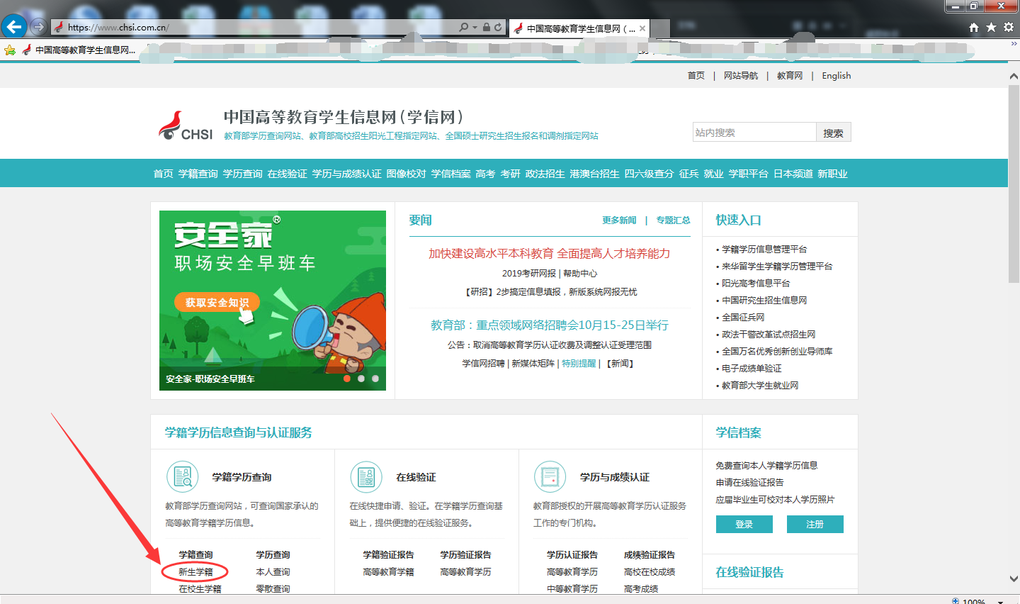 1、打开学信平台网:www.chsi.com.cn,点击左下角新生学籍,如下图: