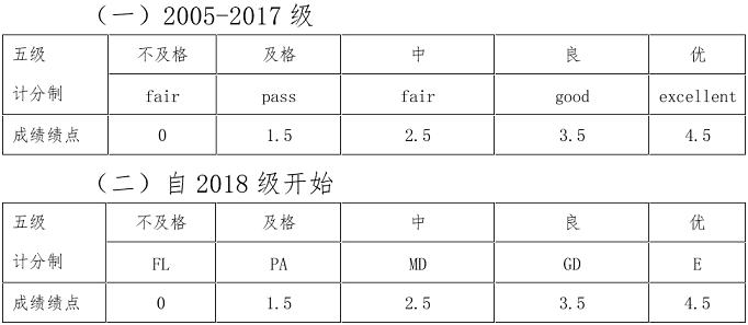 实行五级记分制的课程,考核成绩为不及格,课程绩点为0;考核成绩为及格,课程绩点为1.5;考核成绩为中等,课程绩点为2.5;考核成绩为良好,课程绩点为3.5;考核成绩为优秀,课程绩点为4.5。